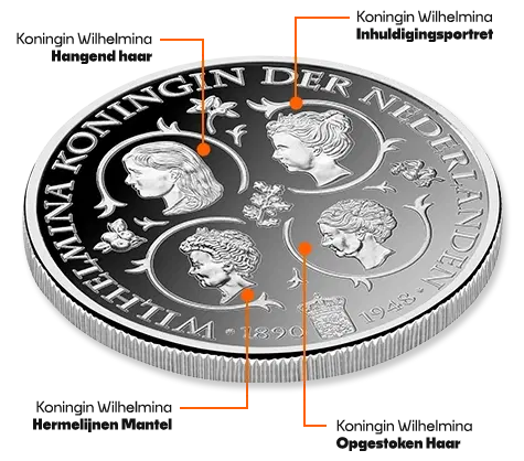 De gratis herdenkings-uitgifte toont de indrukwekkende reeks van 4 portretten die Wilhelmina gedurende haar regeerperiode op Nederlandse munten sierden, waaronder het iconische portret van de jongste koningin die ooit op een munt werd afgebeeld. Elk portret vertelt het verhaal van een jonge vorstin die uitgroeide tot het symbool van standvastigheid, onafhankelijkheid en nationaal besef.